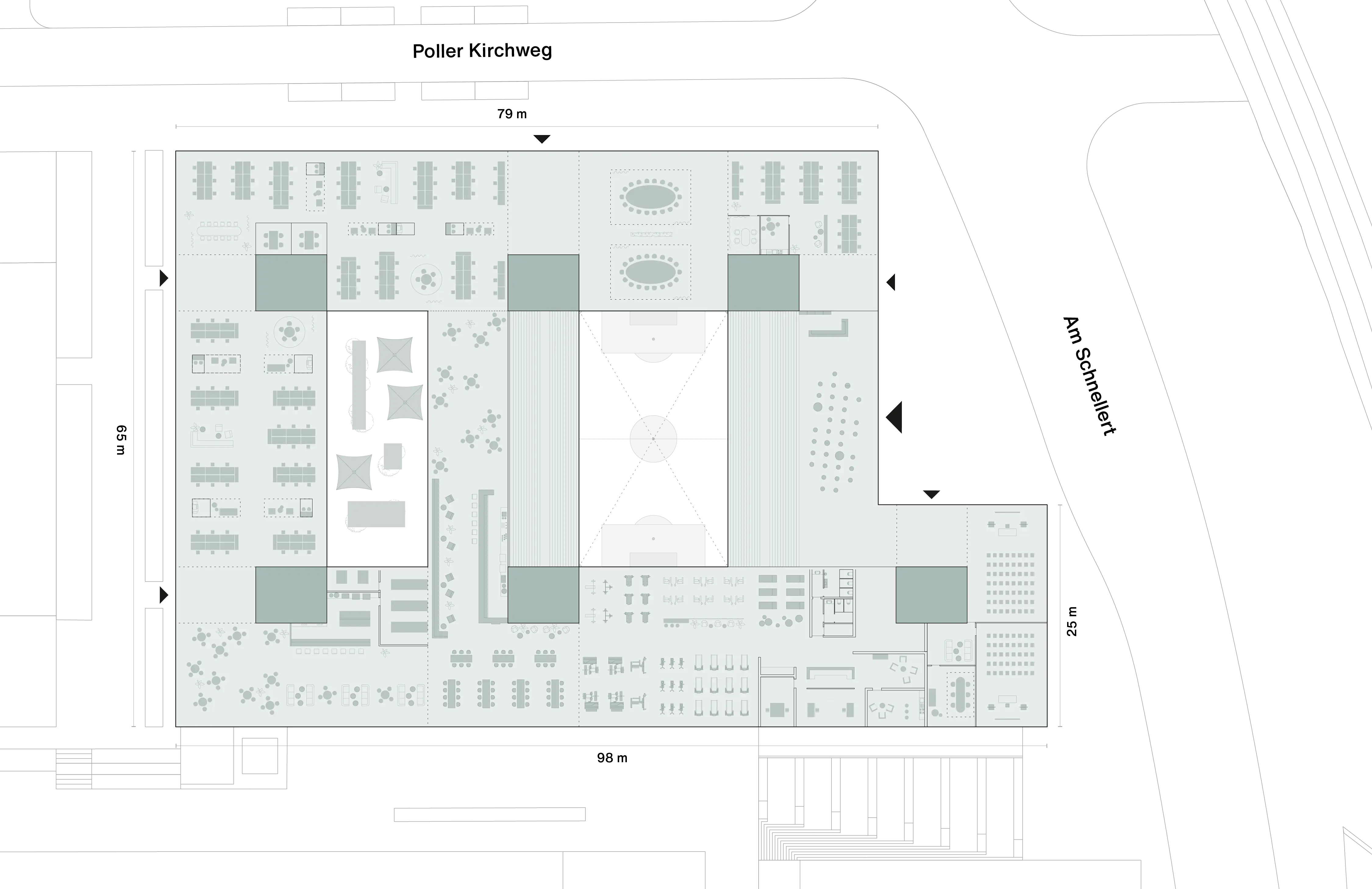 Photovoltaik- und/oder Solarthermieanlagen auf den Dachflächen sowie eine zukunftsfähige Energieversorgung.